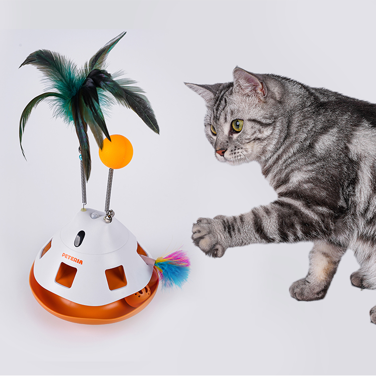 6.该产品底座导轨安装2个小球,小球内安装2个铃铛,宠物玩小球带动铃响,趣味性更大。